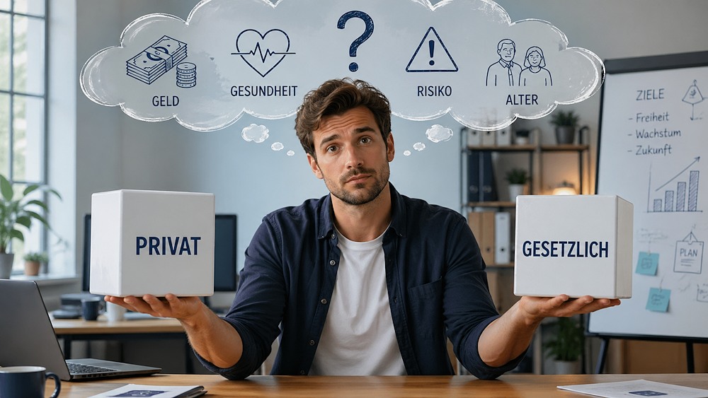 Lohnt sich für Sie als Selbstständige/r die private oder die gesetzliche Krankenversicherung? Unsere kostenlose Entscheidungshilfe geht weit über reinen Beitragsvergleich hinaus – wir bewerten Ihre wirtschaftliche Situation, Ihre Gesundheit und Ihre persönlichen Prioritäten und geben Ihnen am Ende eine klare, ehrliche Empfehlung mit Ampel-System.